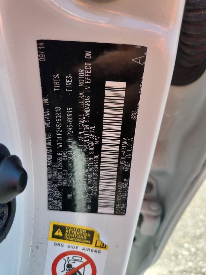 2015 TOYOTA HIGHLANDER - 5TDZKRFH3FS046186, колір - Білий, 3.5, Бензин, із США