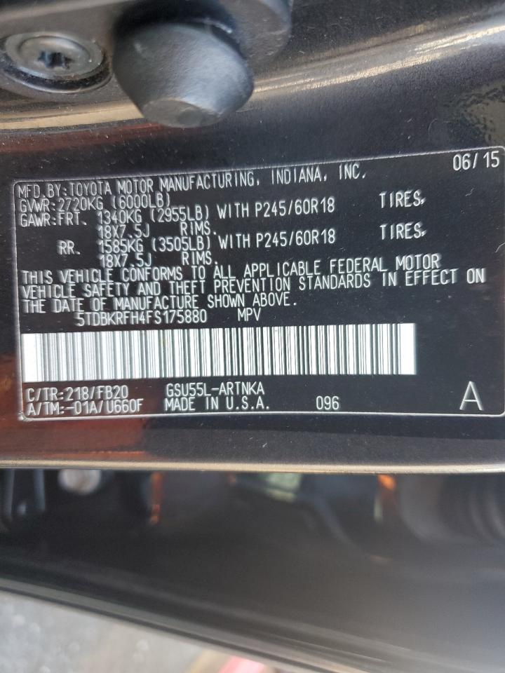 2015 TOYOTA HIGHLANDER - 5TDBKRFH4FS175880, колір - Чорний, 3.5, Бензин, Повний привід із США