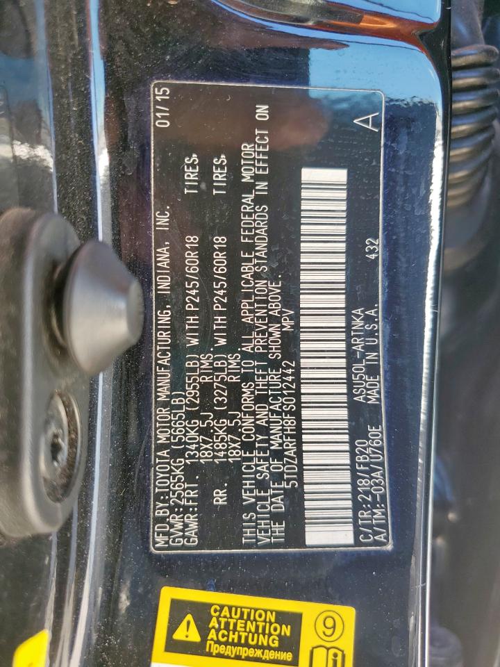 2015 TOYOTA HIGHLANDER - 5TDZARFH8FS012442, колір - Чорний, 2.7, Бензин, із США