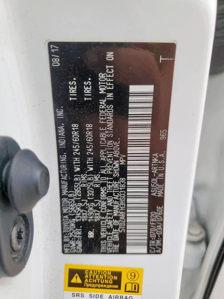2017 TOYOTA HIGHLANDER - 5TDZARFH3HS031838, колір - Білий, 2.7, Бензин, із США