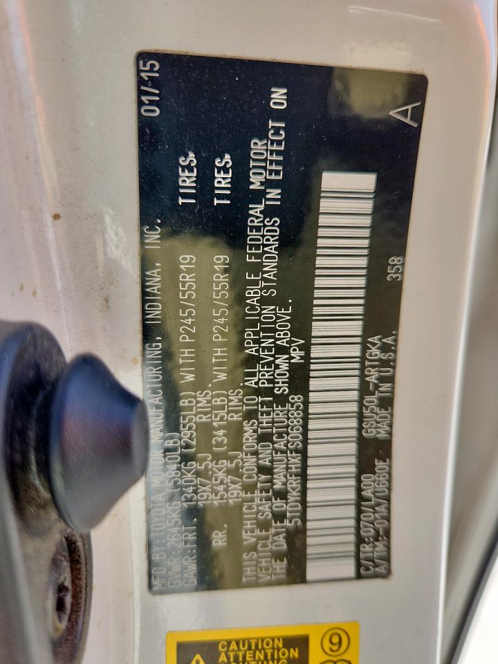 2015 TOYOTA HIGHLANDER - 5TDYKRFHXFS068858, колір - Білий, 3.5, Бензин, із США
