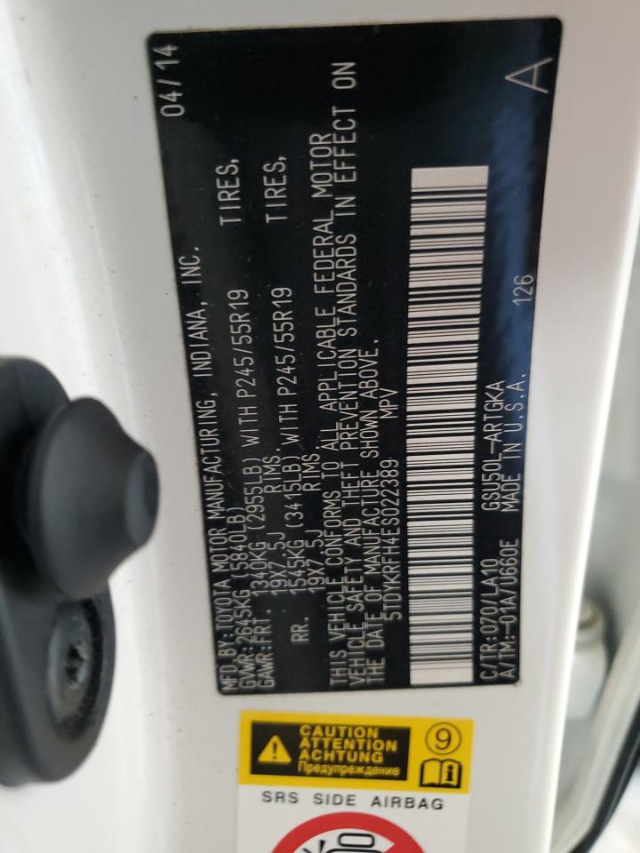 2014 TOYOTA HIGHLANDER - 5TDYKRFH4ES022389, колір - Білий, 3.5, Бензин, із США