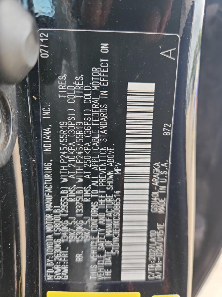 2012 TOYOTA HIGHLANDER - 5TDYK3EHXCS086514, колір - Чорний, 3.5, Бензин, із США