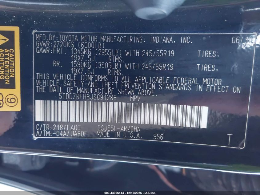 Колір ЧорнийЦиліндри 6Привід Повний привідVIN 5TDDZRFH8JS891288Стан Заводиться та їде (перевірено)Ушкодження Передня права