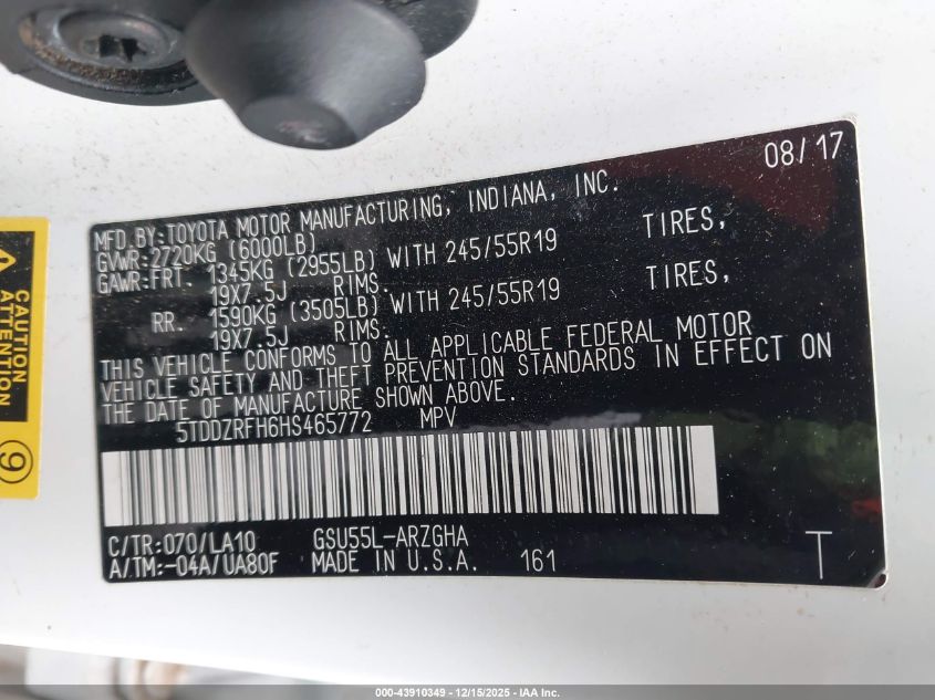 2017 TOYOTA HIGHLANDER - 5TDDZRFH6HS465772, колір - Білий, 3.5, Бензин, Повний привід із США