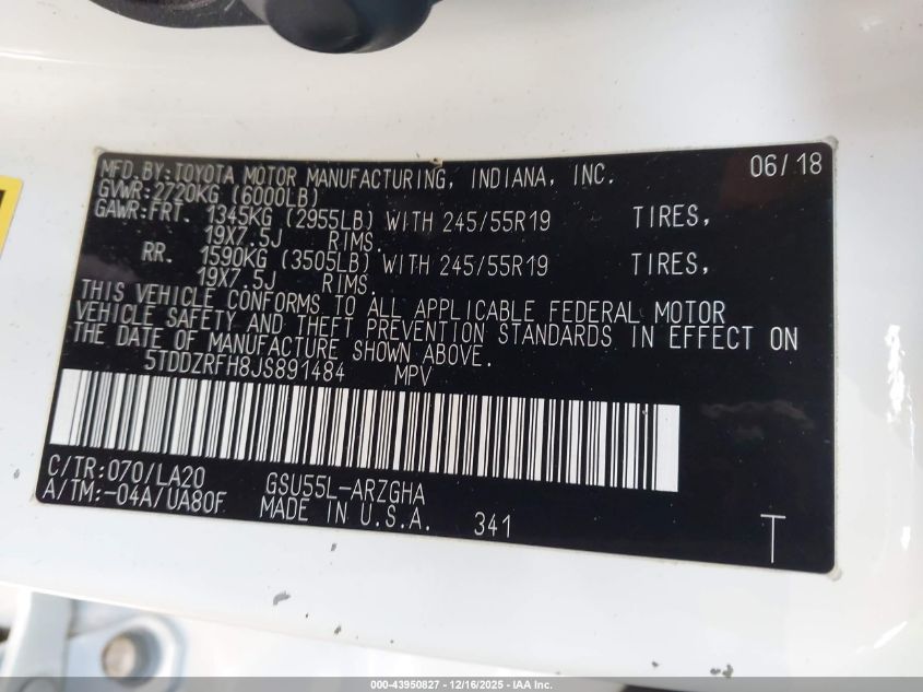 Колір Циліндри 6Привід Повний привідVIN 5TDDZRFH8JS891484Стан НевідомоУшкодження Невідомо