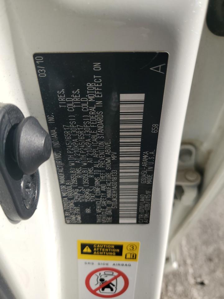 2010 TOYOTA HIGHLANDER - 5TDJK3EH1AS018133, колір - Білий, 3.5, Бензин, Повний привід із США