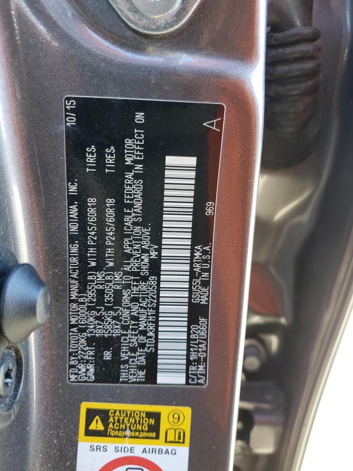 2015 TOYOTA HIGHLANDER - 5TDJKRFH1FS220589, колір - Сірий, 3.5, Бензин, Повний привід із США