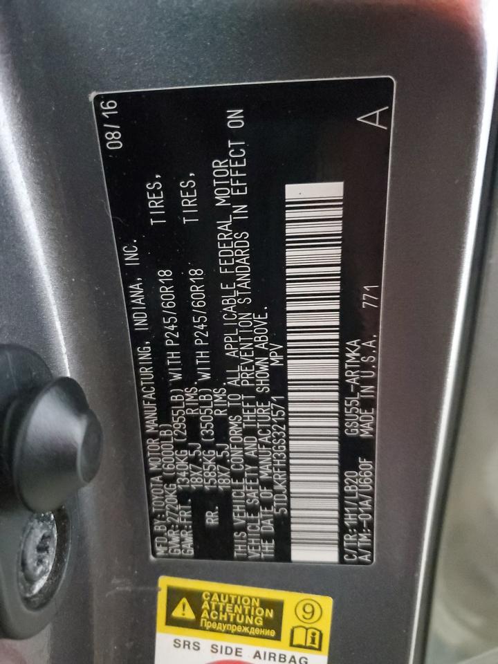 2016 TOYOTA HIGHLANDER - 5TDJKRFH3GS321571, колір - Сірий, 3.5, Бензин, Повний привід із США