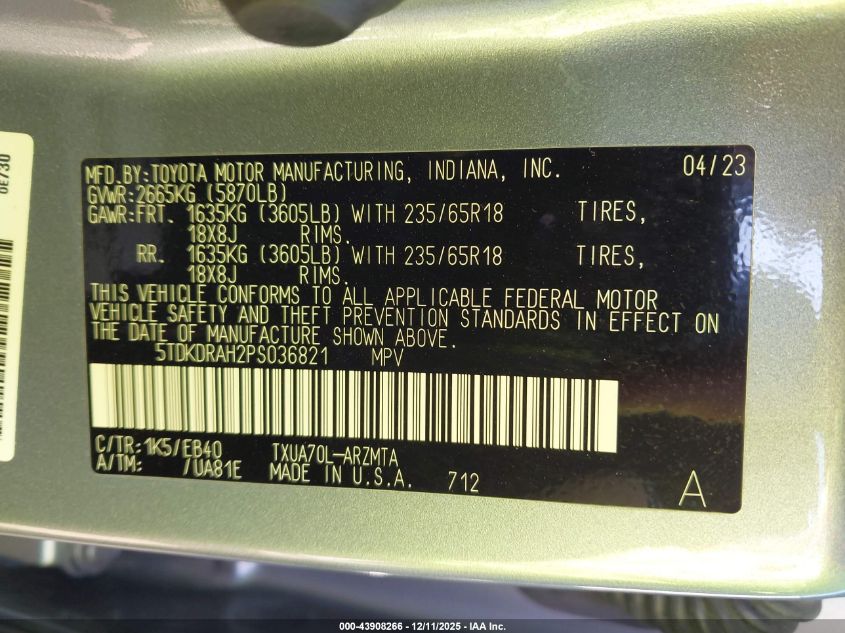 2023 TOYOTA HIGHLANDER - 5TDKDRAH2PS036821, колір - Срібний, 2.4, Бензин, Передній привід із США