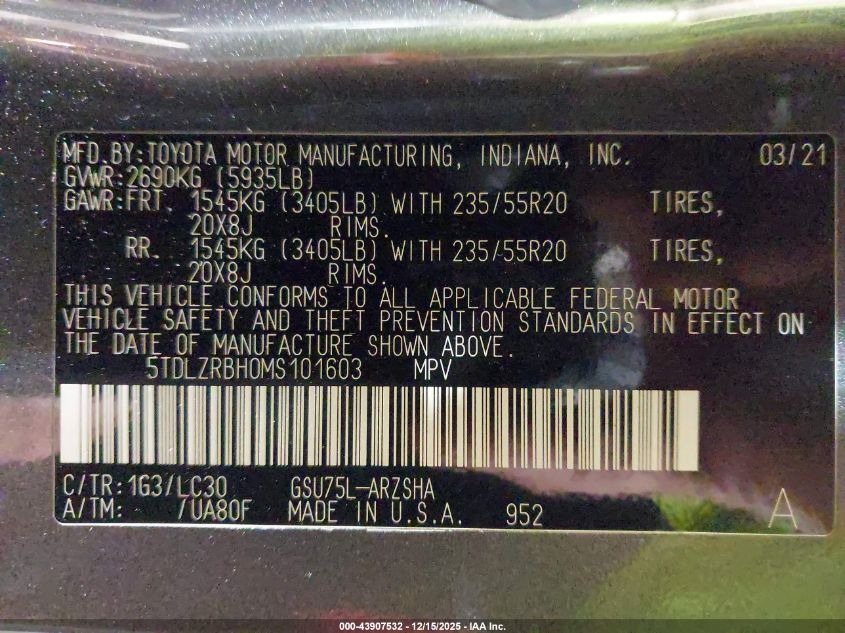 2021 TOYOTA HIGHLANDER - 5TDLZRBH0MS101603, колір - Сірий, 3.5, Бензин, Повний привід із США