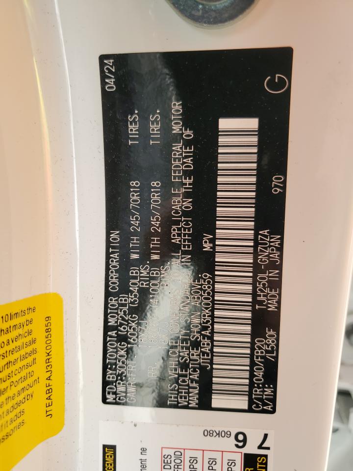 2024 TOYOTA LAND CRUISER - JTEABFAJ3RK005859, колір - Білий, 2.4, Гібрид, 4x4 з заднім приводом із США