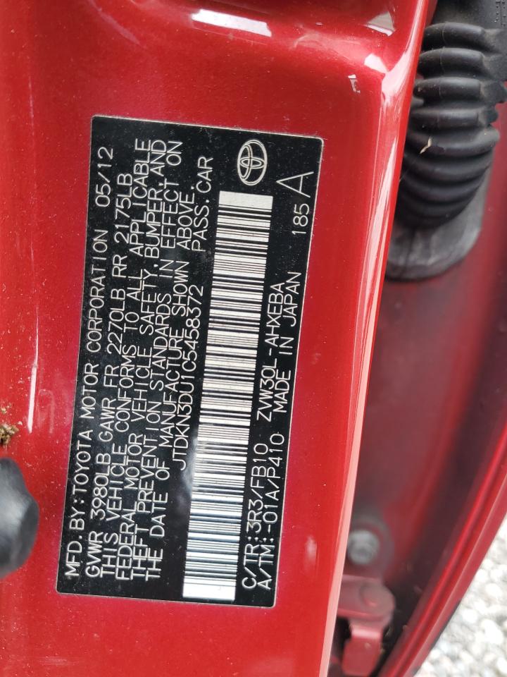 2012 TOYOTA PRIUS - JTDKN3DU1C5458372, колір - Червоний, 1.8, Гібрид, із США