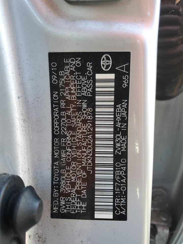 2010 TOYOTA PRIUS - JTDKN3DU2A1291878, колір - Срібний, 1.8, Гібрид, із США
