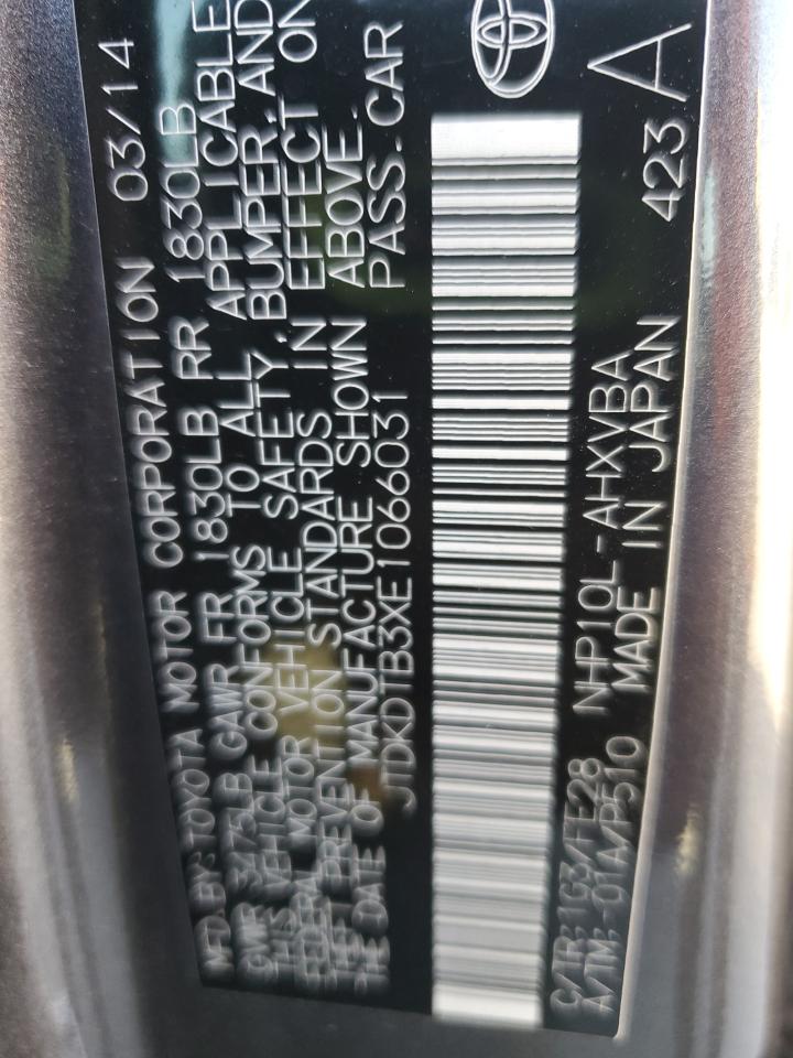 Колір СірийЦиліндри 4VIN JTDKDTB3XE1066031Стан Заводиться та їде (перевірено)Ушкодження З боківДата аукціона 2025-10-09