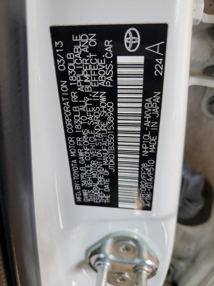 2013 TOYOTA PRIUS C - JTDKDTB35D1538960, колір - Білий, 1.5, Гібрид, із США