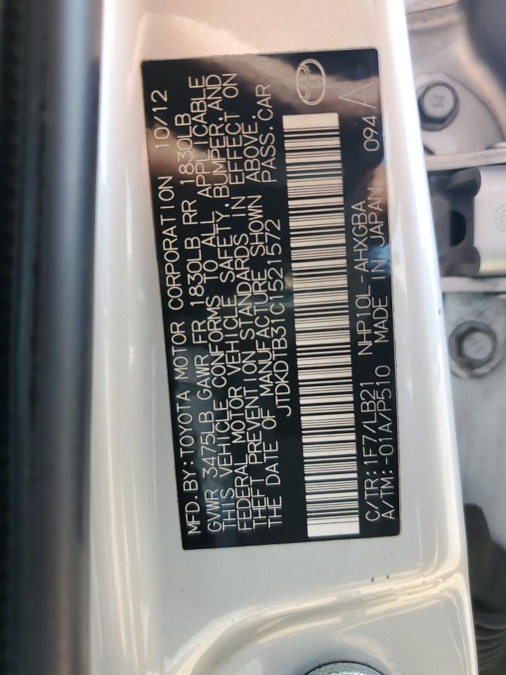 2012 TOYOTA PRIUS C - JTDKDTB31C1521572, колір - Срібний, 1.5, Гібрид, із США