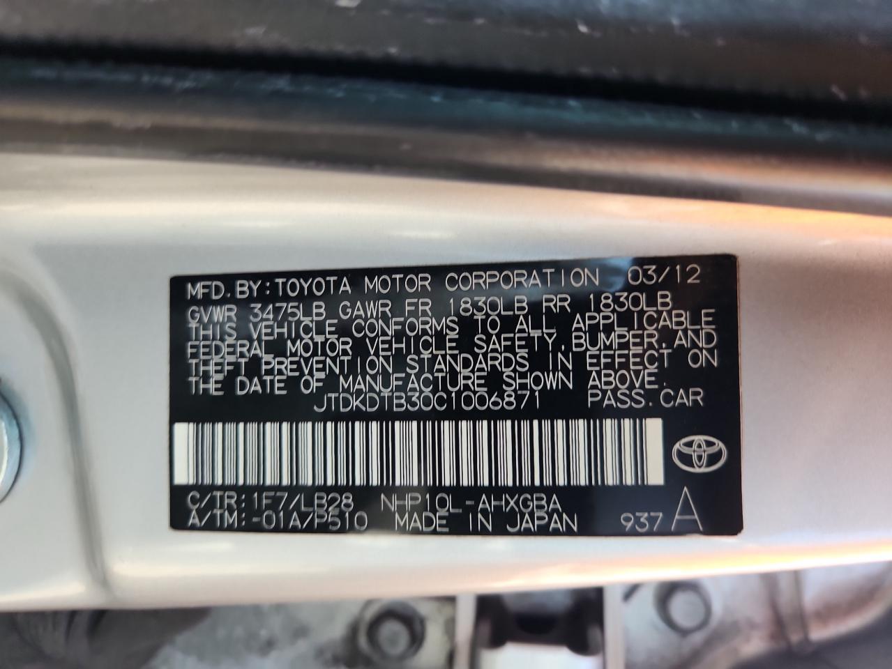 2012 TOYOTA PRIUS C - JTDKDTB30C1006871, колір - Срібний, 1.5, Гібрид, із США