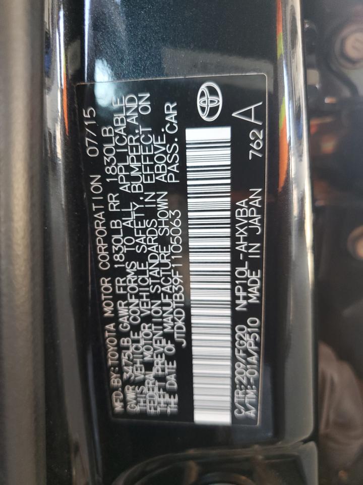 2015 TOYOTA PRIUS C - JTDKDTB39F1105063, колір - Чорний, 1.5, Гібрид, із США
