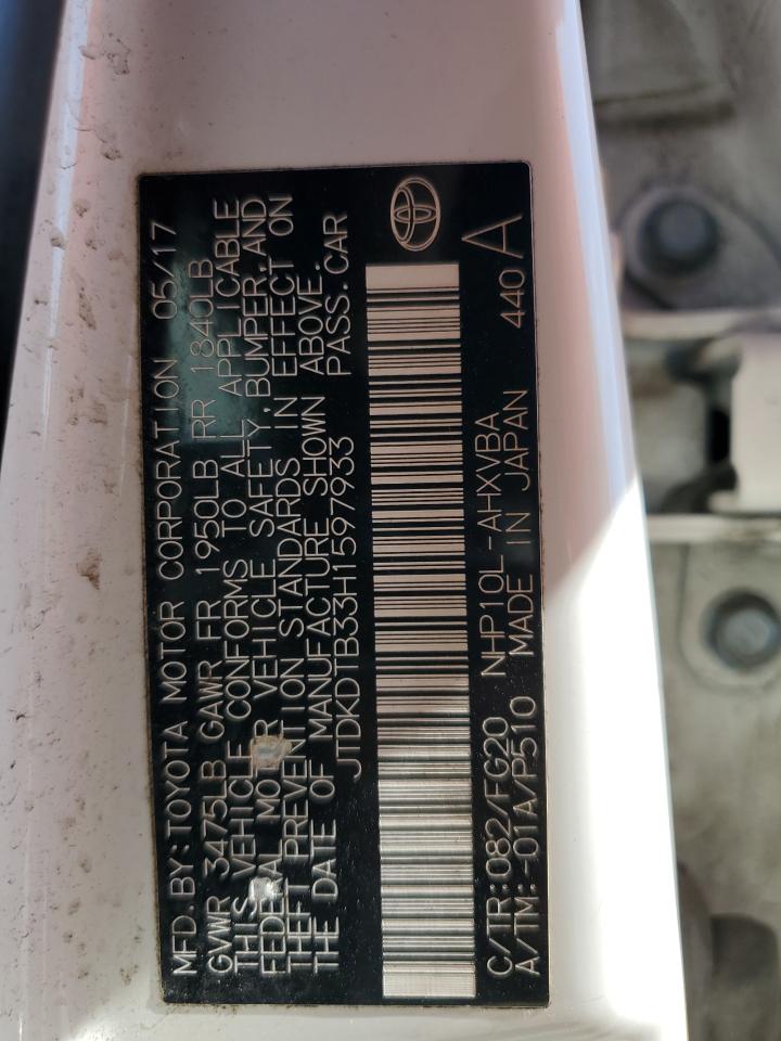 2017 TOYOTA PRIUS C - JTDKDTB33H1597933, колір - Білий, 1.5, Гібрид, із США