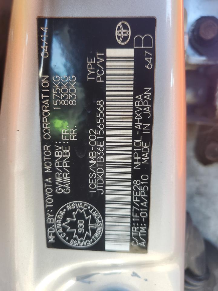2014 TOYOTA PRIUS C - JTDKDTB36E1565568, колір - Срібний, 1.5, Гібрид, із США