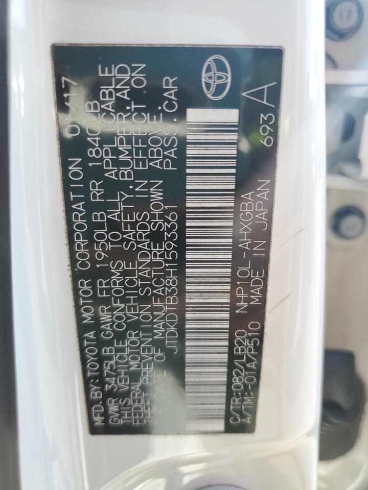 2017 TOYOTA PRIUS C - JTDKDTB38H1593361, колір - Білий, 1.5, Гібрид, із США