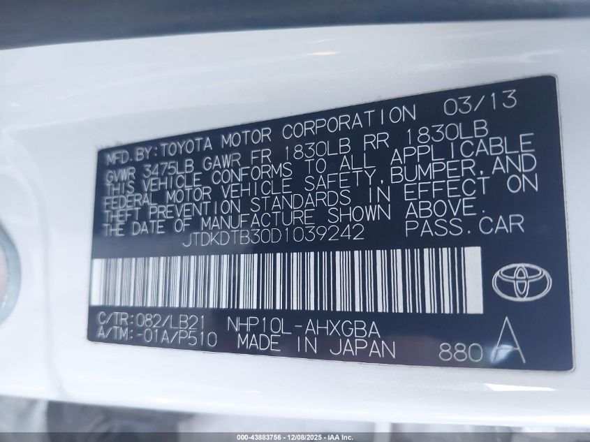 Колір БілийЦиліндри 4Привід Передній привідVIN JTDKDTB30D1039242Стан Заводиться та їде (перевірено)Ушкодження Ліва сторона
