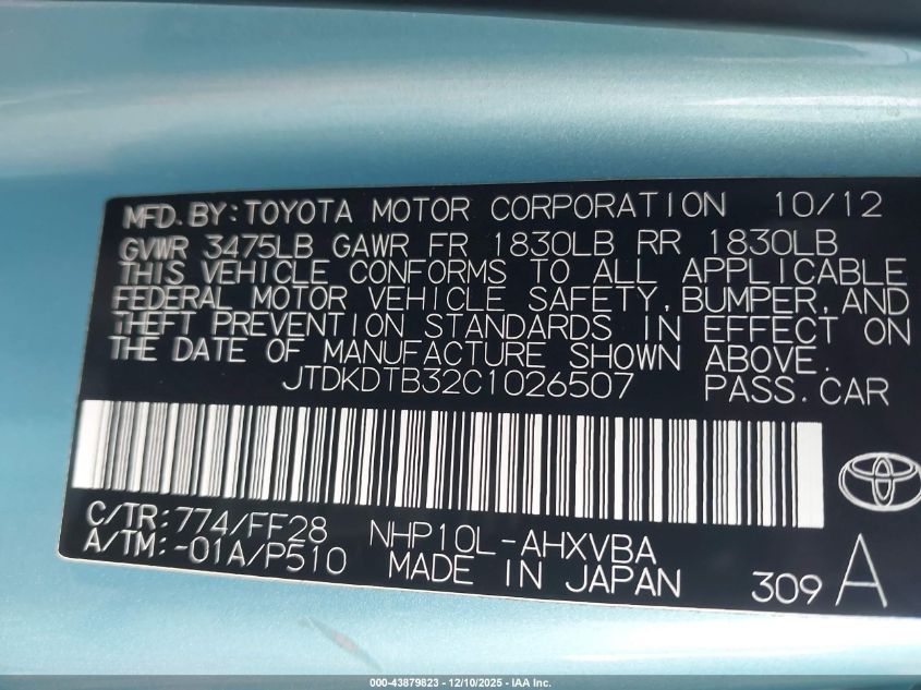 2012 TOYOTA PRIUS C - JTDKDTB32C1026507, колір - Синій, 1.5, Гібрид, Передній привід із США