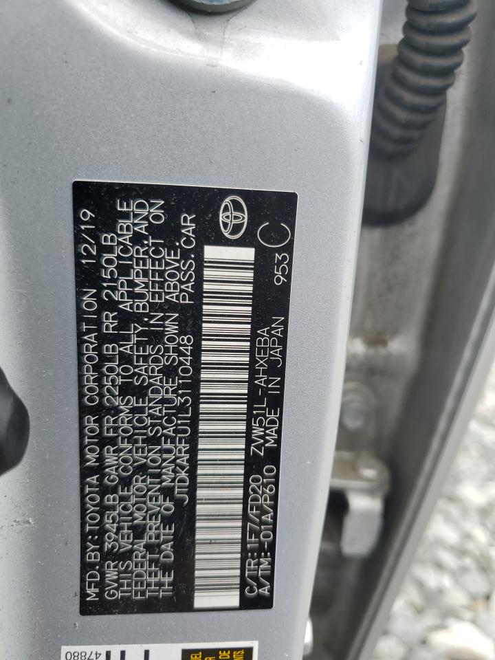 2020 TOYOTA PRIUS - JTDKARFU1L3110448, колір - Срібний, 1.8, Гібрид, із США