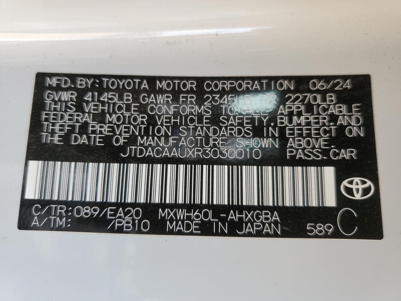 Колір БілийЦиліндри 4VIN JTDACAAUXR3030010Стан НевідомоУшкодження Передня або задняДата аукціона 2025-10-13