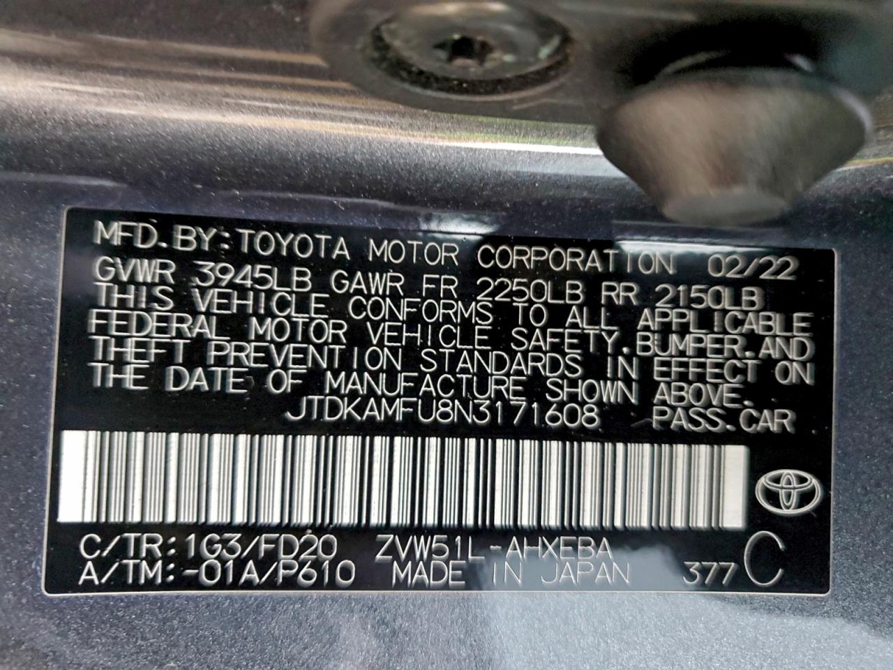 2022 TOYOTA PRIUS - JTDKAMFU8N3171608, колір - Сірий, 1.8, Гібрид, із США