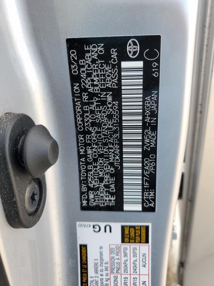 Колір СрібнийЦиліндри 4VIN JTDKARFP3L3155594Стан Заводиться та їде (перевірено)Ушкодження З боків