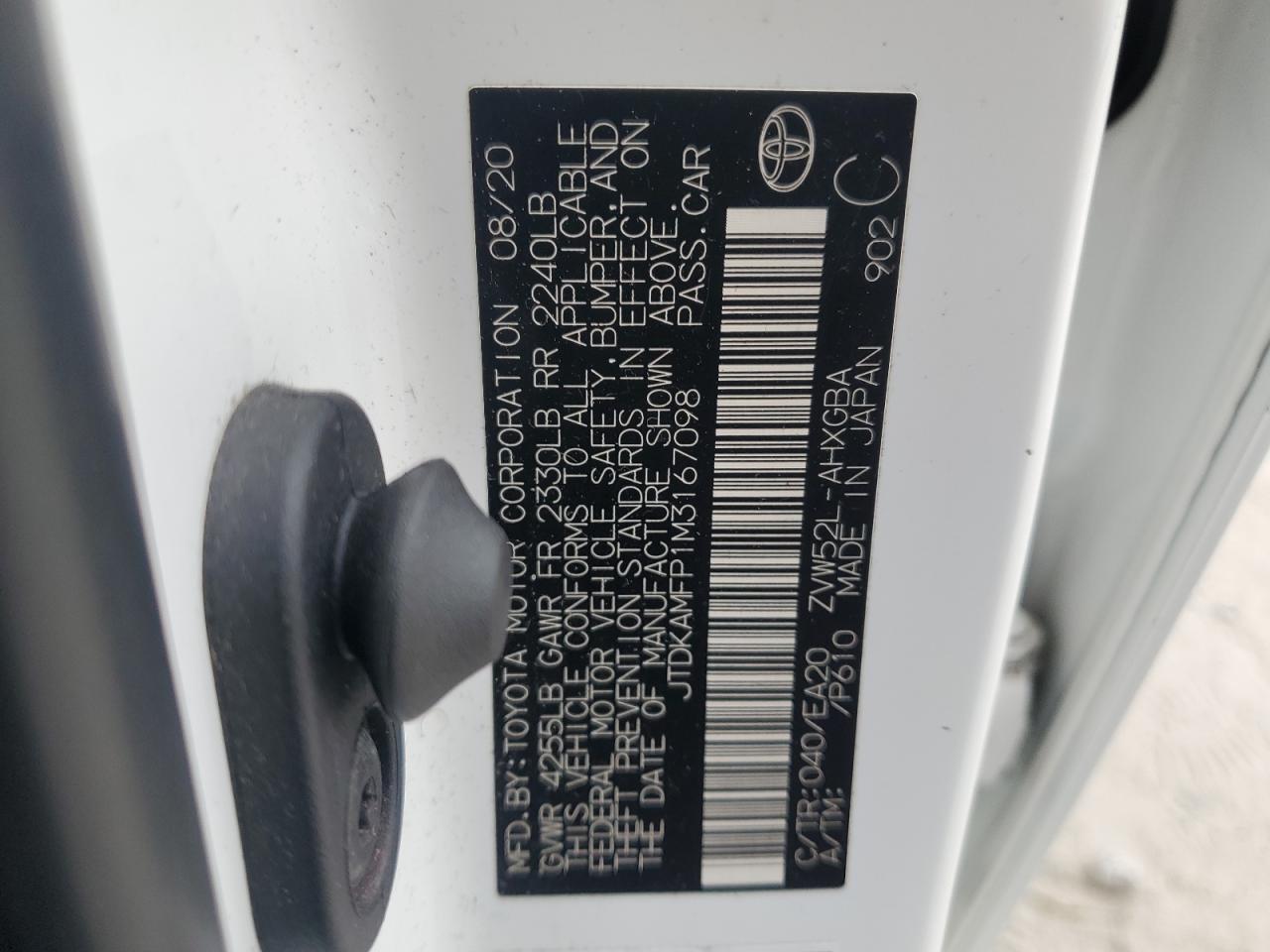 Колір БілийЦиліндри 4VIN JTDKAMFP1M3167098Стан Заводиться та їде (перевірено)Ушкодження Передня або задня