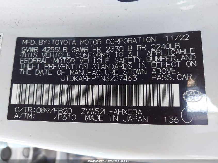 Колір БілийЦиліндри 4Привід Передній привідVIN JTDKAMFP1N3227463Стан Заводиться та їде (перевірено)Ушкодження Передня і задня