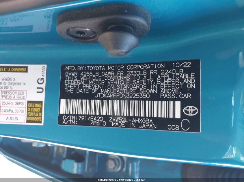 2022 TOYOTA PRIUS PRIME - JTDKAMFP0N3225350, колір - Синій, 1.8, Гібрид, Передній привід із США