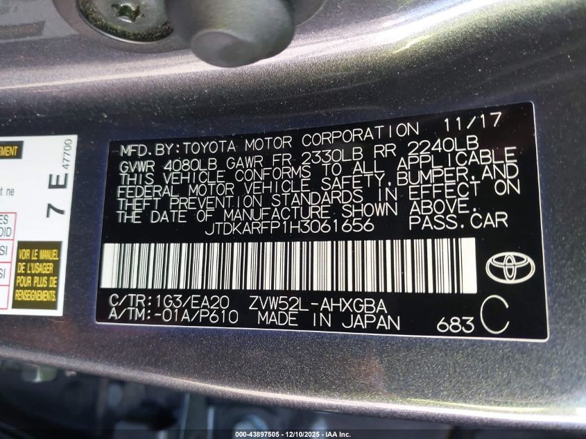 2017 TOYOTA PRIUS PRIME PRIUS PRIM