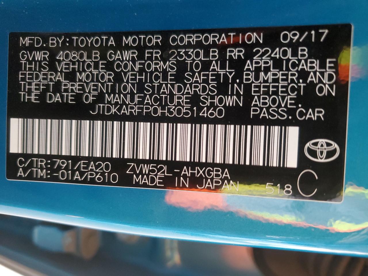 2017 TOYOTA PRIUS PRIME - JTDKARFP0H3051460, колір - Синій, 1.8, Гібрид, із США