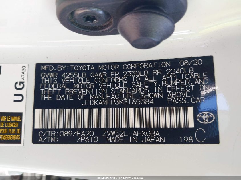 2021 TOYOTA PRIUS PRIME - JTDKAMFP3M3165384, колір - Білий, 1.8, Гібрид, Передній привід із США