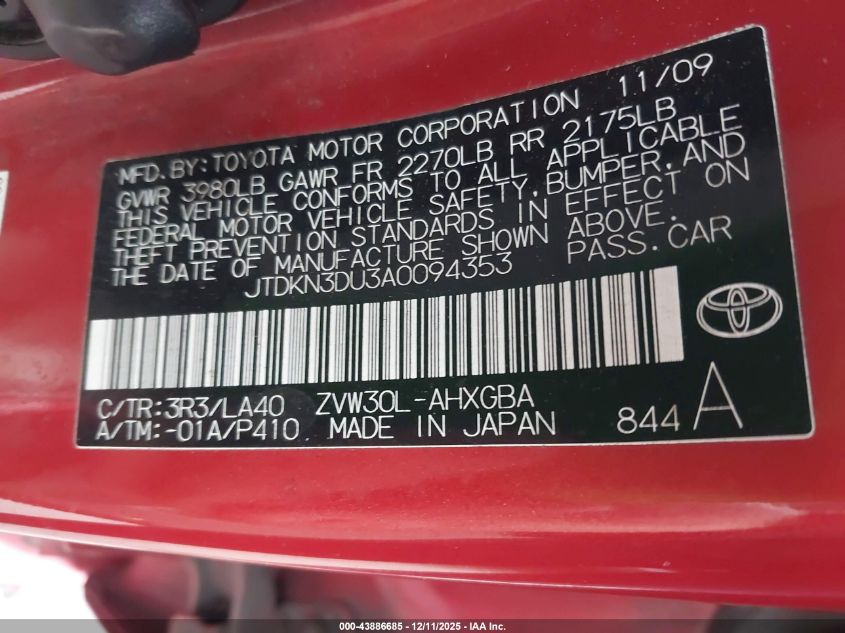 Колір ЧервонийЦиліндри 4Привід Передній привідVIN JTDKN3DU3A0094353Стан Заводиться та їде (перевірено)Ушкодження Невідомо
