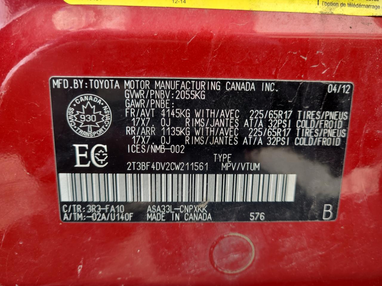 2012 TOYOTA RAV4 - 2T3BF4DV2CW211561, колір - Червоний, 2.5, Бензин, Повний привід із США