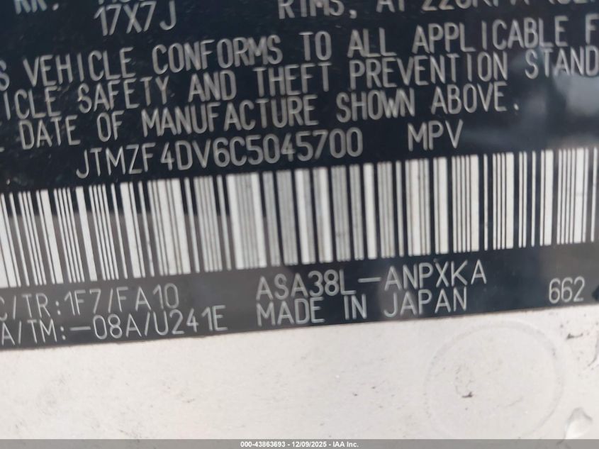 Колір СрібнийЦиліндри 4Привід Передній привідVIN JTMZF4DV6C5045700Стан СтаціонарноУшкодження Передня або задня