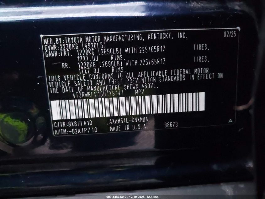 Колір СинійЦиліндри 4Привід Повний привідVIN 4T3RWRFV1SU178141Стан Заводиться та їде (перевірено)Ушкодження Передня або задня