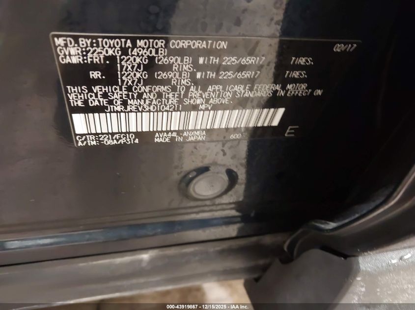 2017 TOYOTA RAV4 HYBRID - JTMRJREV3HD104211, колір - Чорний, 2.5, Гібрид, Повний привід із США