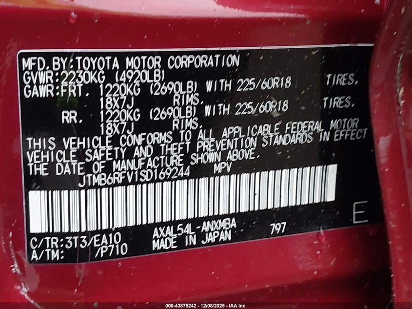 2025 TOYOTA RAV4 HYBRID - JTMB6RFV1SD169244, колір - Бургундія, 2.5, Гібрид, Повний привід із США
