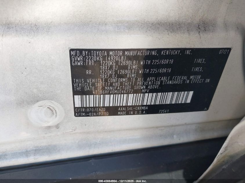 2021 TOYOTA RAV4 HYBRID - 4T3B6RFV6MU046772, колір - Білий, 2.5, Гібрид, Повний привід із США