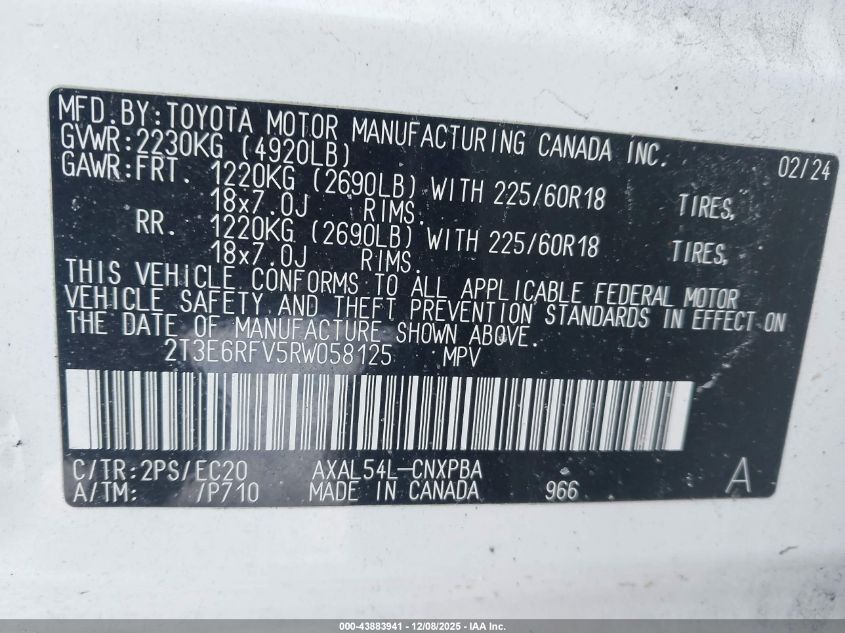 2024 TOYOTA RAV4 HYBRID - 2T3E6RFV5RW058125, колір - Білий, 2.5, Гібрид, Повний привід із США