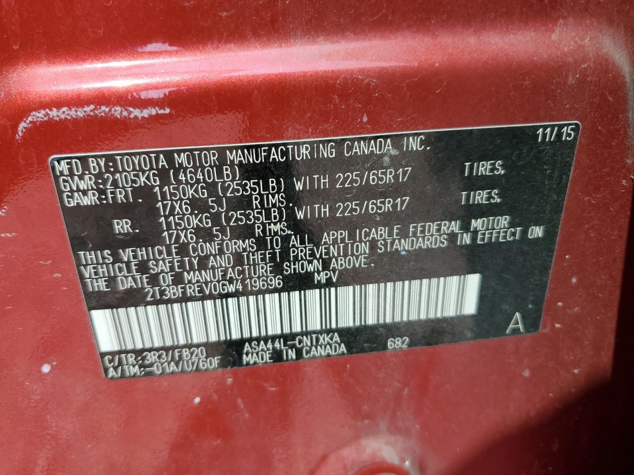 Колір ЧервонийЦиліндри 4Привід Повний привідVIN 2T3BFREV0GW419696Стан Заводиться та їде (перевірено)Ушкодження Передня або задня