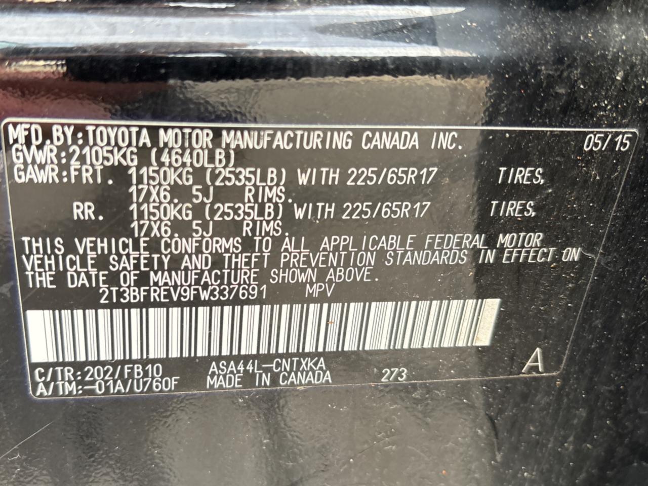 Колір ЧорнийЦиліндри 4Привід Повний привідVIN 2T3BFREV9FW337691Стан Заводиться та їде (перевірено)Ушкодження НезначніДата аукціона 2025-10-09