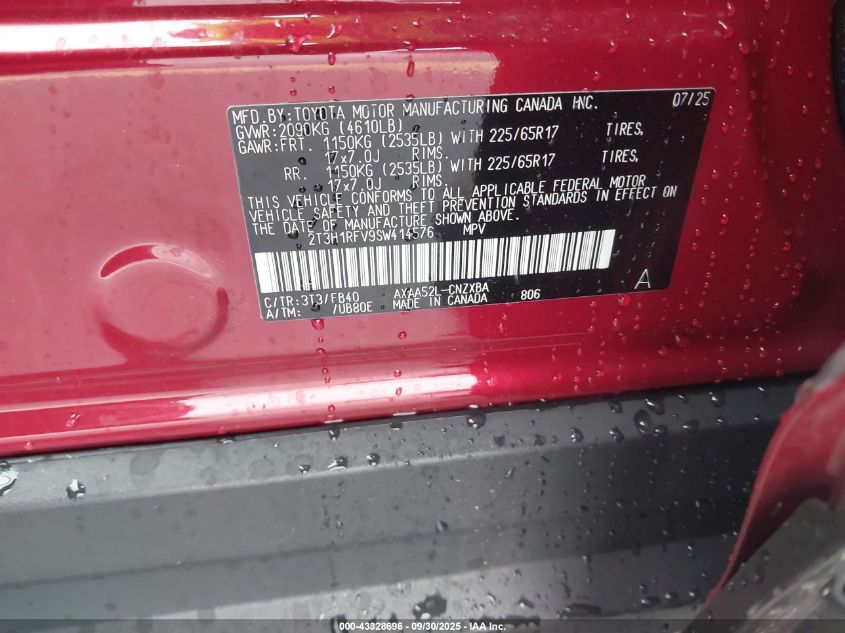 2025 TOYOTA RAV4 - 2T3H1RFV9SW414576, колір - Червоний, 2.5, Бензин, Передній привід із США