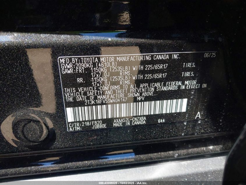 2025 TOYOTA RAV4 - 2T3K1RFV5SW404147, колір - Чорний, 2.5, Бензин, Передній привід із США